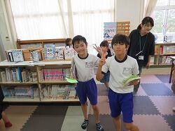 残り半分の時間に図書室に行ってみると、たくさんの東っ子たちが、本を借りに来ていました。今はポイントを集めるとしおりをもらえるイベントをしています。ちょうどポイントが集まった子がいました。これからもたくさん本に親しんでね。