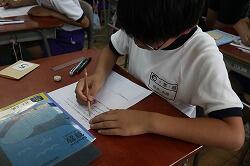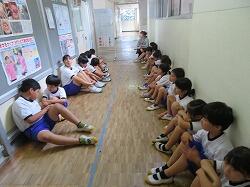 先生から指示がなくても「地震だ。」といって、すぐに机の下にもぐることができた子が大勢いました。