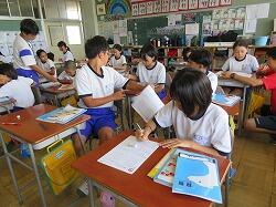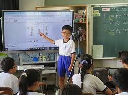 外国語で「できること、できないことを伝えることができる」という学習をしていました。「I can play soccer.」「Can you play soccer?」などやり取りをしていました。中には、流暢な英語を話していて、びっくりしました。