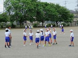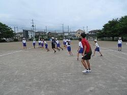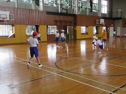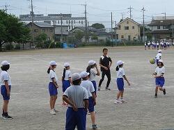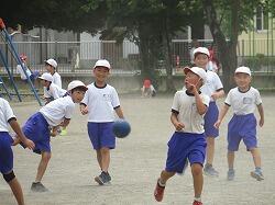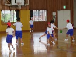 ドッジボールです。その中で、ボールを投げる機会がない子にボールを渡す場面や、ルールを守ってゲームを楽しむ様子が見られました。体育の中で、様々なことを学んでいたようです。