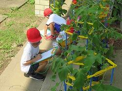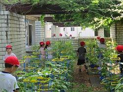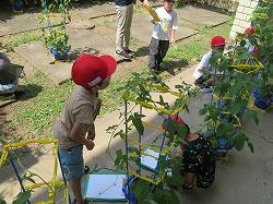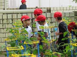 2年生の中には、野菜の収穫ができたみたく、おいしそうなナスを見せてくれた子がいました。これからも面倒を見て、野菜が収穫できるといいですね。
