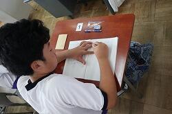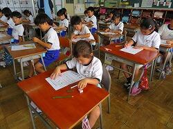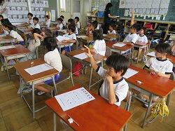 計算もずいぶん慣れてきました。最後にプリントのおもしろ問題を楽しそうに友達と交流する姿がありました。