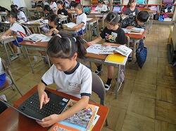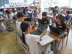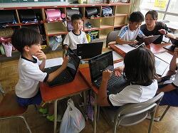 先日の続きで、生活科で生き物のことを調べ、そのことを一人一台端末にまとめていました。
