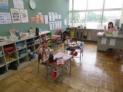 今日は、ハッピータイムで長い昼休みでしたが、気温が高かったため、子供たちの安全を考え、半分を外遊びありにして、残り半分を室内で過ごすようにしました。