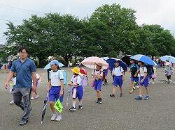 帰るときは、ほぼ雨が降っていなかったのですが、全児童が帰った後、雨が降り出したので濡れなかったか心配しました。明日も元気に登校してください。
