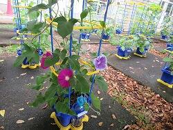 一年生は、面倒を見てきた朝顔が咲いてうれしそうです。
