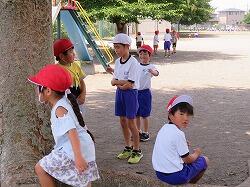 今日は、朝から暑くなりました。子供たちの中には、汗だくで登校してきた子もいました。登校するなり、桜の木の日陰に入り「すずしい~。」と、つぶやいていました。