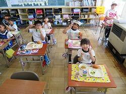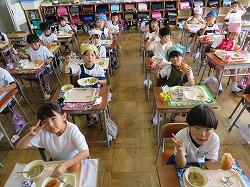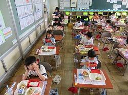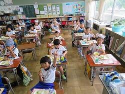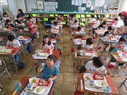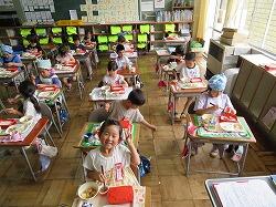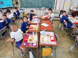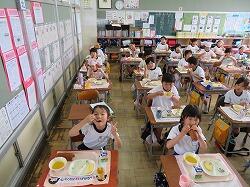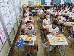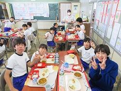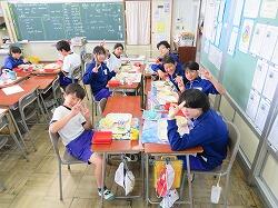 1年生は、納豆を食べるために、たれの袋を切るのに苦戦していました。それでもがんばって、食べることができました。また、一つ成長しましたね。
