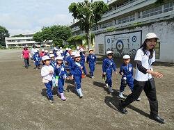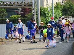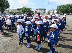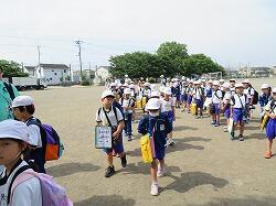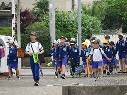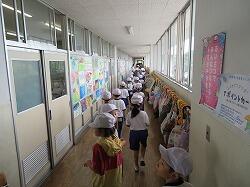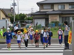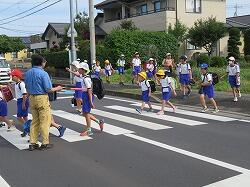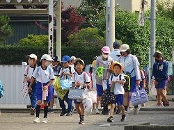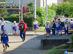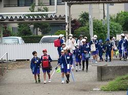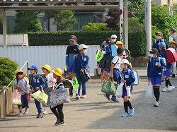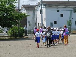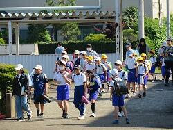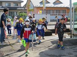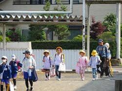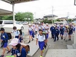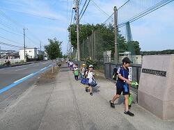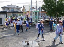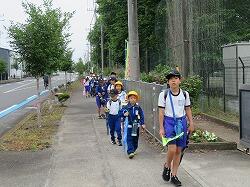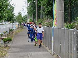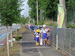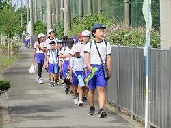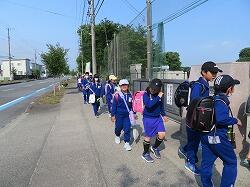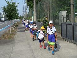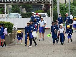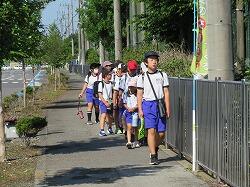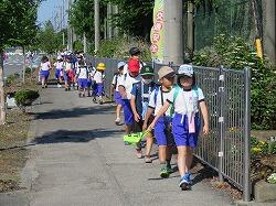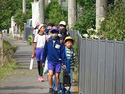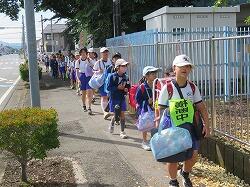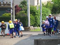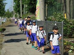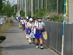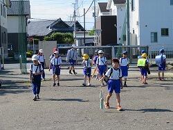 きちんと一列で歩き、「あんぜん」を守っています。すばらしいです。