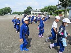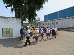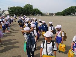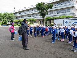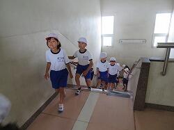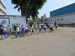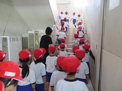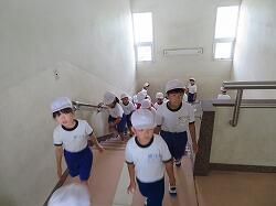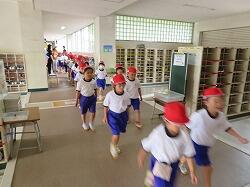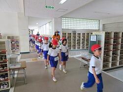 本校は、真岡市のハザードマップを見ると浸水の恐れがあります。そのため、もしも浸水したときに、垂直避難の訓練を行いました。1・2階にいる児童が3階に避難する練習です。「も・お・か・し」のきまりを守って、安全に避難することができました。