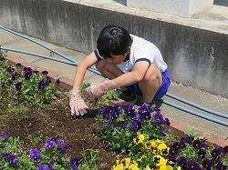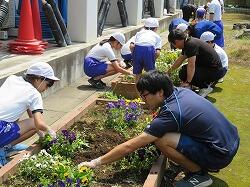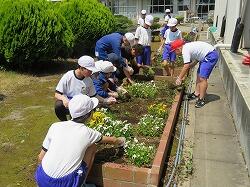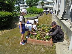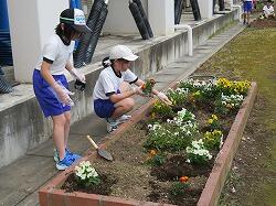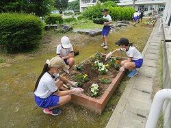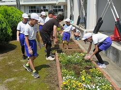 昨日の委員会活動で、環境委員の子供たちが、花壇に花を植えてくれました。