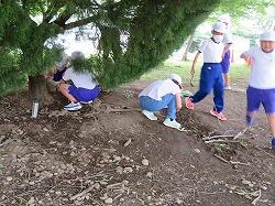 校庭の東側フェンス付近の枝を少し落としてもらいました。通学路に枝がかかっていたので、梅雨前に切っていただきありがとうございました。
