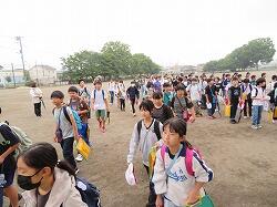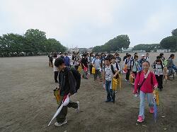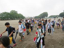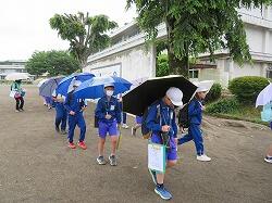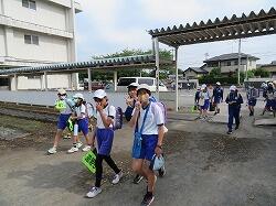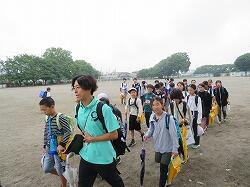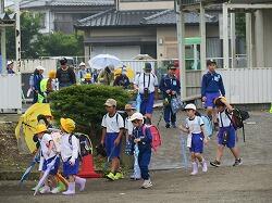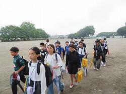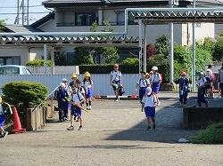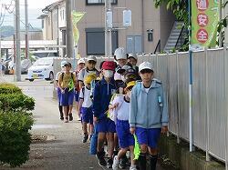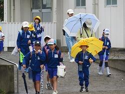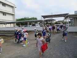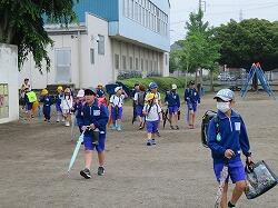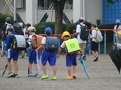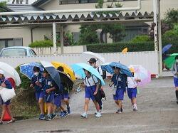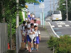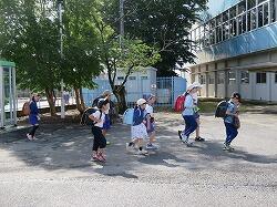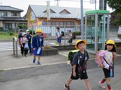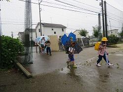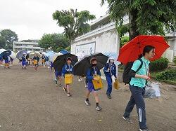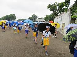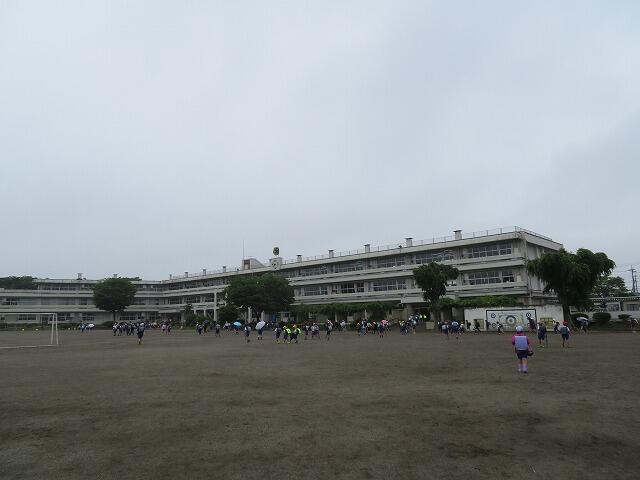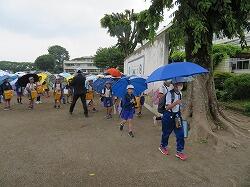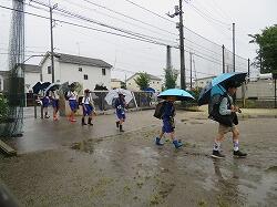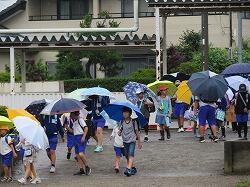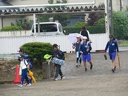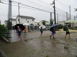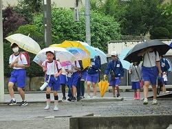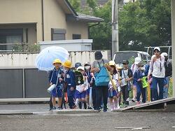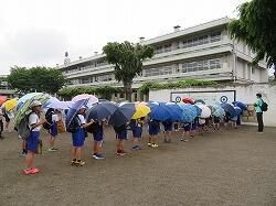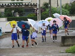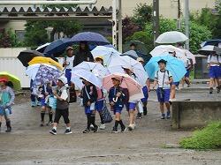 梅雨空の中、東っ子たちが元気に登校してきました。