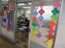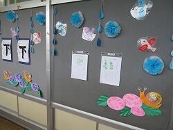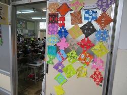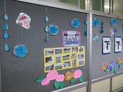 スマイル学級の廊下に季節感がある、かわいらしい掲示物が飾られていました。