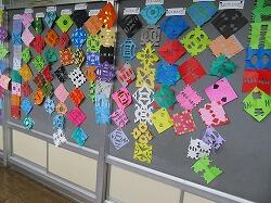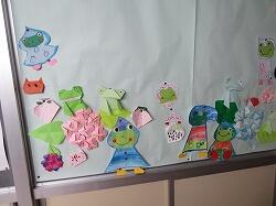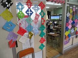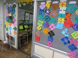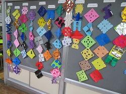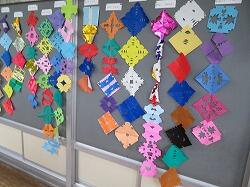 図工の時間に作ったのでしょう。はさみと色の学習ですね。今度のフリータイム授業参観の時に、見ることができますね。