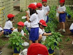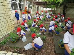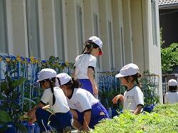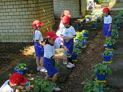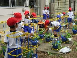 「蔓が伸びたのがある。」水やりをしながら、植物の成長を発見する声が聞こえました。