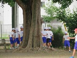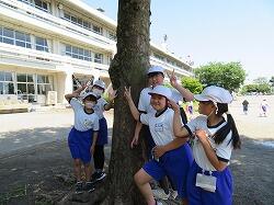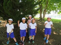 トウカエデは、大きな木ですね。その周りをぐるぐる回っている子供たちを見かけました。三角庭では、1年生が何やらやっています。みんなで落ち葉を集めて、山をつくっていました。完成したら、呼びに来てくれました。では、みんなで「ハイポーズ。」楽しい昼休みになったことでしょう。