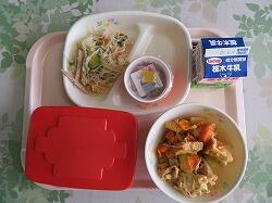 今日の給食は「納豆」「春雨サラダ」「肉じゃが」でした。