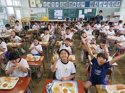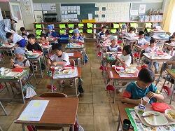 6年生は、どんどんおかわりをして、残さず食べる子がたくさんいました。