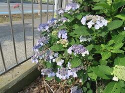そのフェンスの近くでは、紫陽花の花が開き始めました。