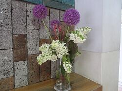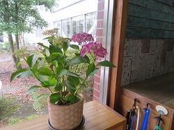 昨日、本校のアジサイの様子をお知らせしましたが、職員玄関に目をやると、かわいらしい花が飾られていました。