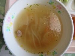 今日の給食は「鶏肉のトマトソースかけ」「コールスローサラダ」「ラビオリスープ」でした。