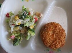 コロッケをパンにはさんで、コロッケパンにして食べている子もいました。
