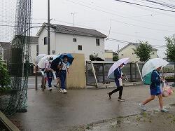 今朝も、子供たちが登校してくる時間は、雨も降らずに済みました。