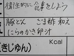 今日の給食は「豚丼」「ごま酢和え」「にらのかきたま汁」でした。