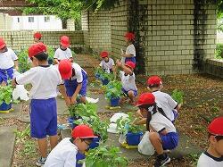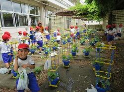 きれいな緑ですね。一年生もアサガオの水やりを頑張っています。