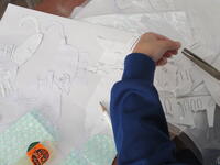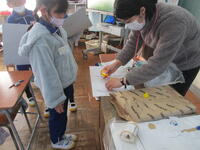 東っ子たちは、器用にハサミを使って紙を切ったり、切り取った紙を貼ったりしながら、「紙版画」作りに一生懸命に、そして楽しそうに取り組んでいました。