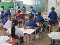 6年生と5年生の朝の教室の様子です。