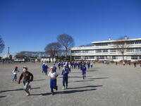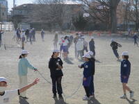 各学級ごとに東っ子たちは、先生方と一緒に縄跳びにチャレンジしていました。それぞれの学級で東っ子たちは、みんなで声をかけ合いながらタイミングを合わせて一生懸命に縄を跳んでいました。