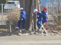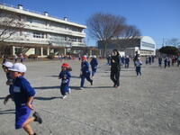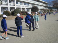 東っ子たちは、今日の3学期始業式や予定されていた諸活動を終えて、下校のために登下校班ごとに集合しました。