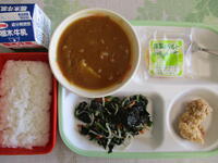 今日の真岡東小学校の給食は、「真岡西小学校リクエスト給食」で、とりのから揚げ、磯辺あえ、カレー、洋梨のタルト、ごはん、牛乳のメニューで、784Kcal(中学年)でした。