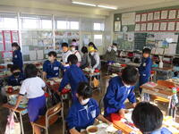 真岡市では第3火曜日が「お弁当の日」になっているので、東っ子たちは今日はお弁当も持って登校しています。