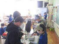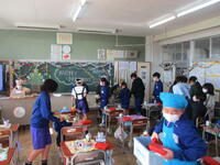 6年生の東っ子たちは、今年初めてとなるしばらくぶりの給食を給食当番を中心にして協力しながら準備していました。
