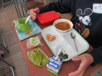 今日の給食も2年生の東っ子たちは、「きゅうしょくおいしーです!」などと言いながら、とてもおいしそうに食べていました。