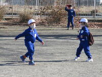 冬休みが明けて、東っ子たちは今日はしばらくぶりに友達と一緒に外に出て、元気いっぱいに遊んでいます。