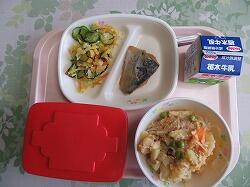 今日の給食は「サバの味噌煮」「たくあんあえ」「じゃがいものそぼろ煮」でした。