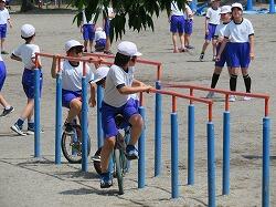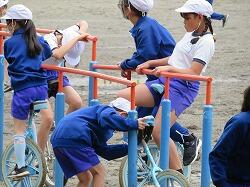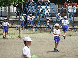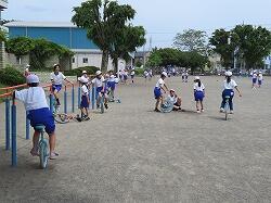ドッジボールをする子、鬼ごっこをする子、一輪車をする子、鉄棒をする子、ブランコをする子など、さまざまな遊びを楽しんでいました。