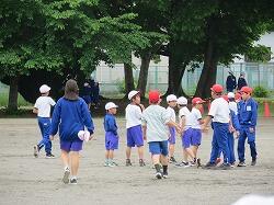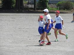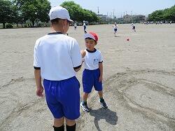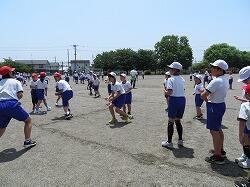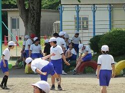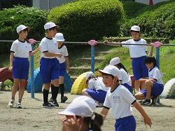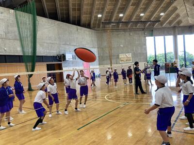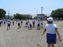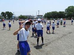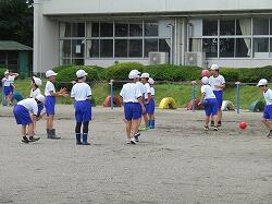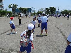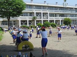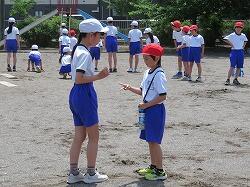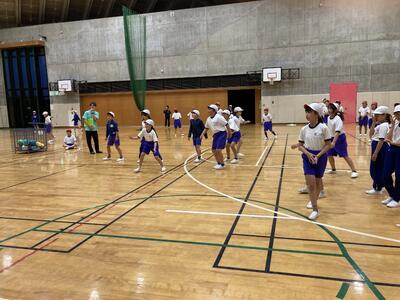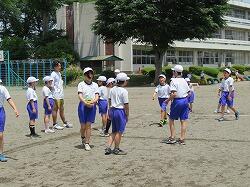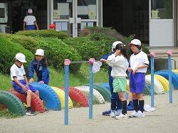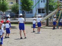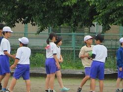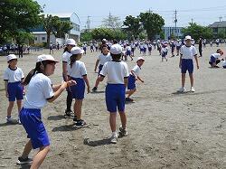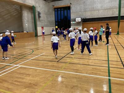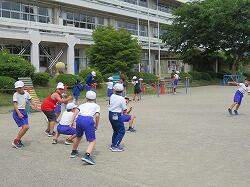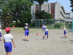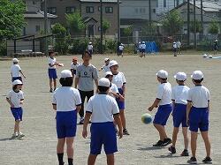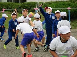 ドッジボールをしている班を見ると、高学年は、下から優しく投げたり、利き腕ではない方で投げたりして、低学年でも楽しく遊べるようにしていました。中には、低学年の子に意識してパスをしている姿も見られました。