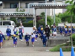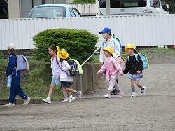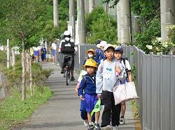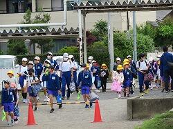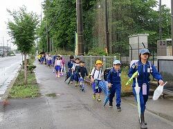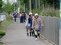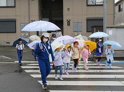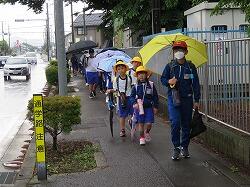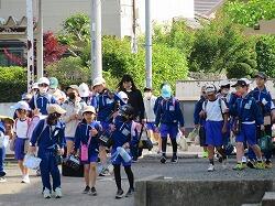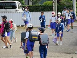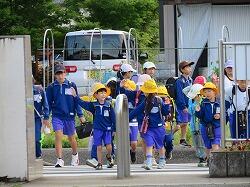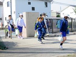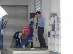 正門付近で見ていると、横断の際に停まってくれた自動車に「ありがとうございました。」とあいさつをしている姿がありました。