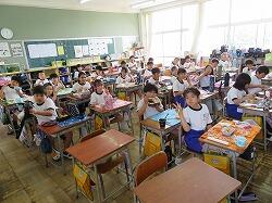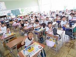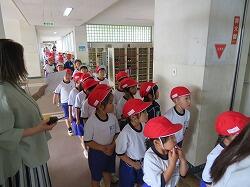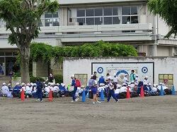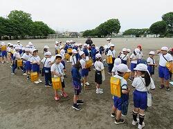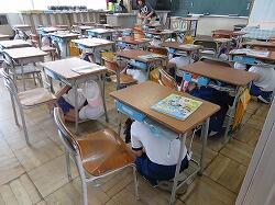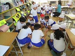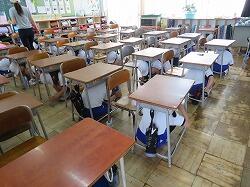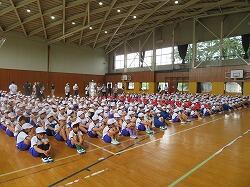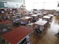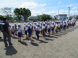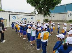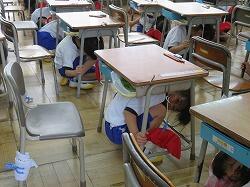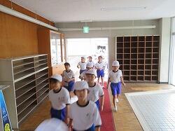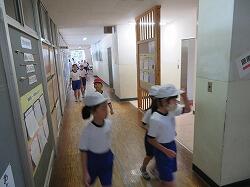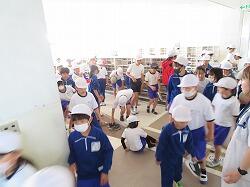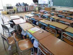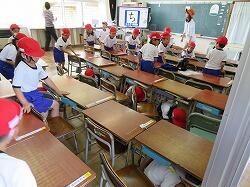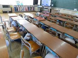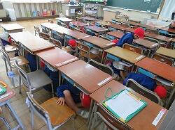 1年生にとっては、小学校での初めての避難訓練でした。上手に机の下に隠れ、避難場所の体育館まできちんと避難することができました。2年生から5年生も今の教室からの避難は初めてです。