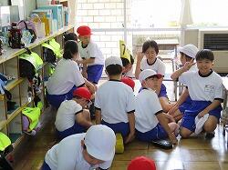 本校では、縦のつながりの中で、子供たちに思いやりの心など、心の教育を推進するために「ふれあい班遊び」という活動を行っています。ふれあい班は、1年生から6年生まで、1~2名ずつ入り、36班編成にして実施しています。