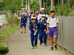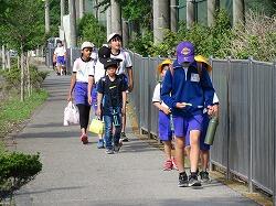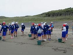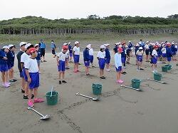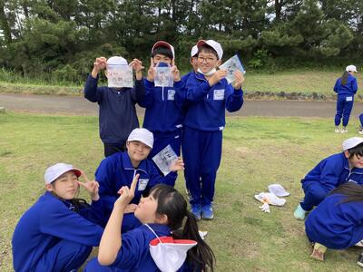 海浜自然の家での最後の活動は、海浜探検ビンゴウォークラリー。快晴の空の下、さわやかな風に吹かれながら活動しました。