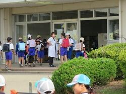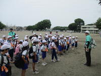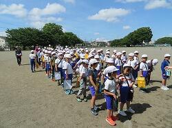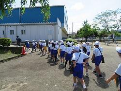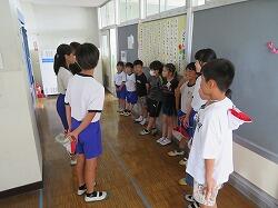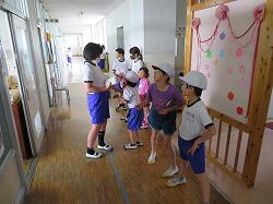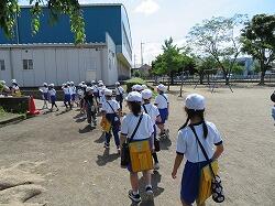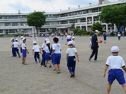 業間の休み時間に、校庭で遊んでいたり、廊下で友達と話をしていたりする、日頃の休み時間の状態から、避難する訓練をしました。