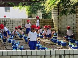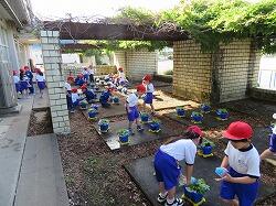1年生は、アサガオの水やりを頑張っています。「校長先生、私の大きくなったよ。」「葉っぱが12枚ある。」「ぼくのまだ5個だから、あと1つさくはずなんだけどな~」など、いろいろ話しかけてくれました。