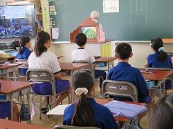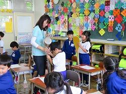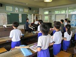 音楽の授業を行っていました。ちょうど発声練習の時に授業の様子を見たのですが、すばらしい声が出ており、大変ビックリしました。のどが開かれており、伸びのある歌声でした。
