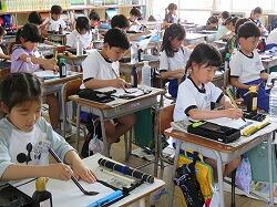 3年生から習字がスタートします。準備も大変ですが、すばやく準備をしている姿がありました。